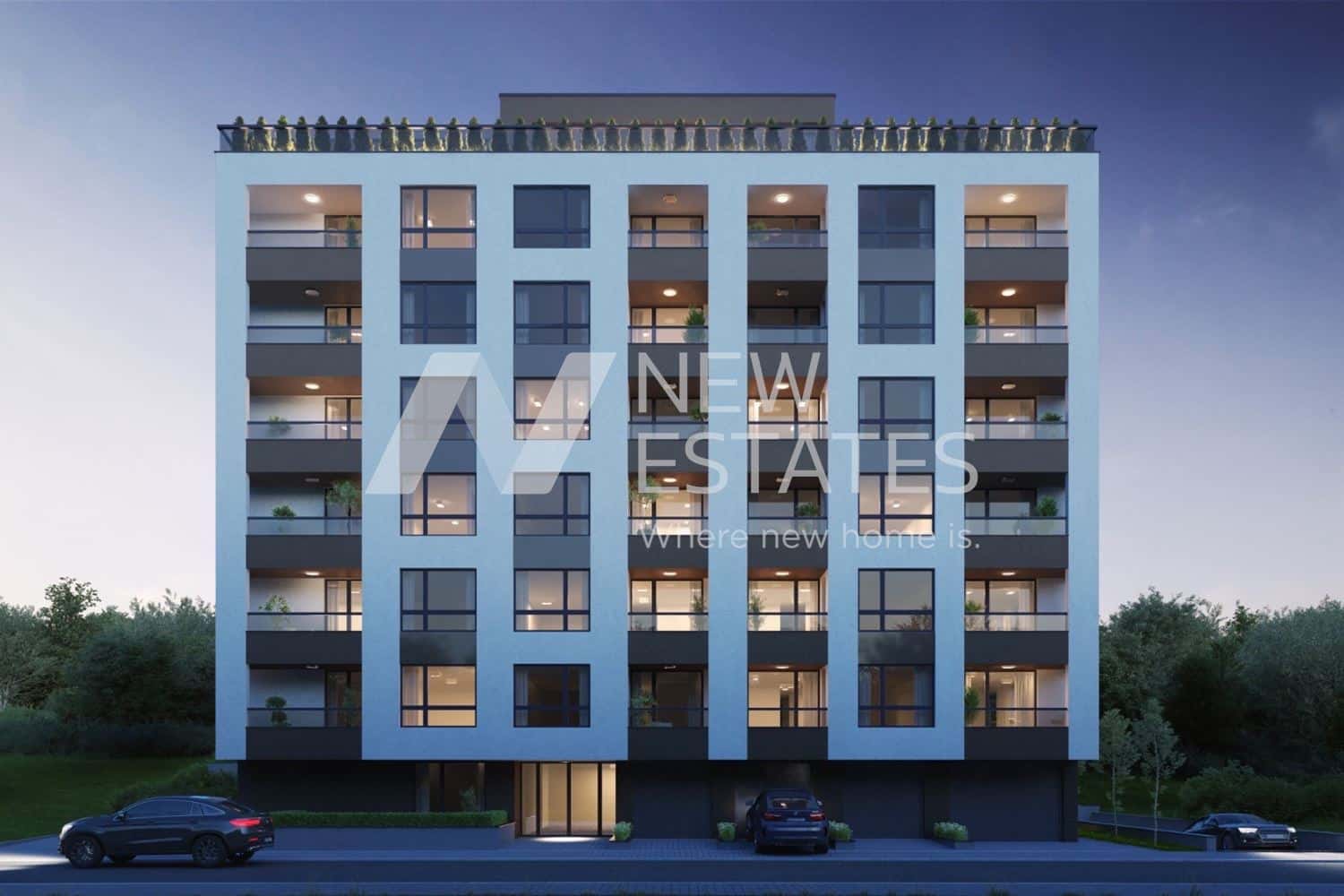 Сградата притежава двустайни, тристайни и четиристайни апартаменти, гаражи и паркоместа.