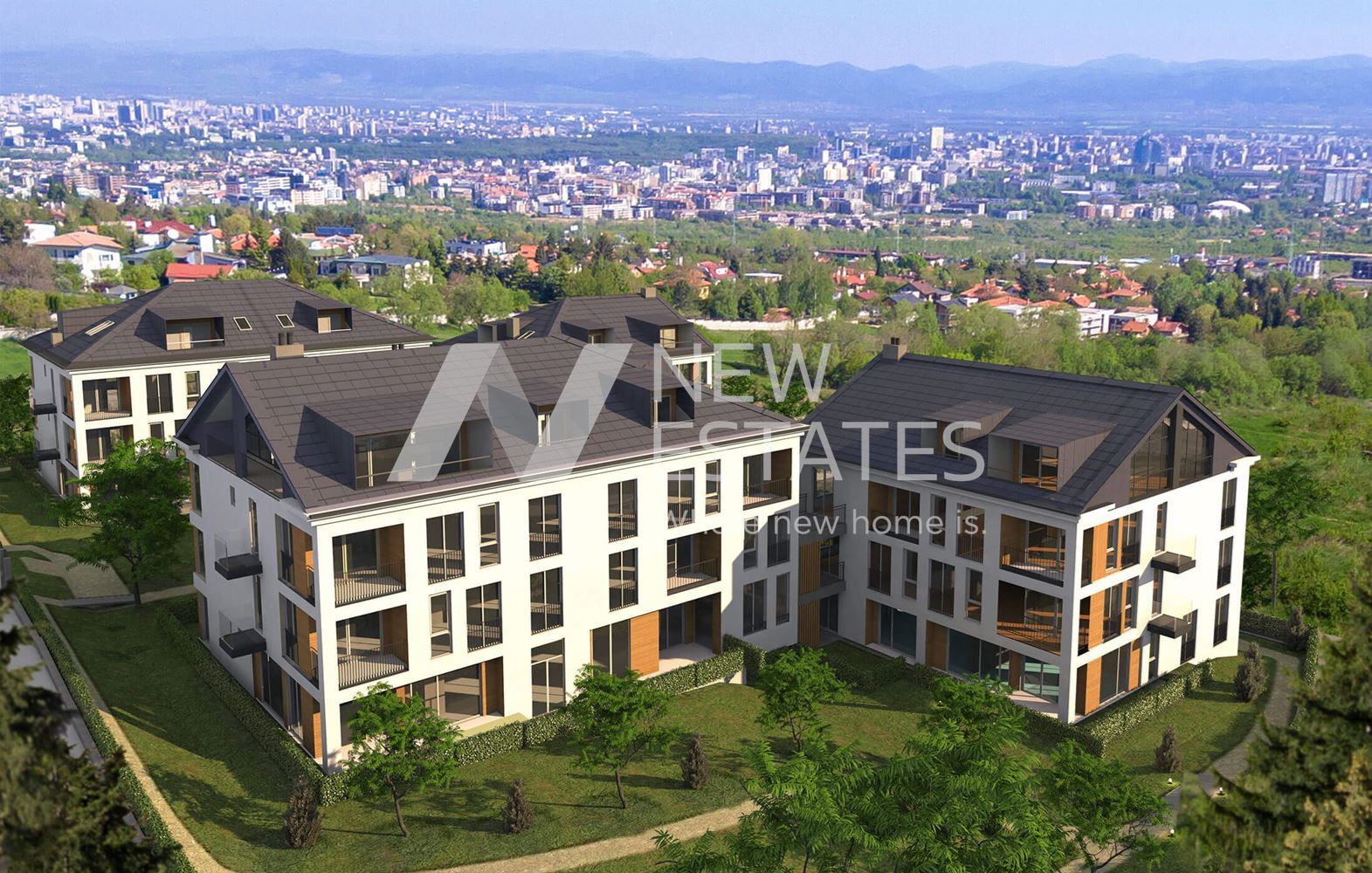 New Estates има удоволствието да представи на Вашето внимание стилен жилищен комплекс, намиращ се в тих и спокоен район, заобиколен от прекрасна природа. Локацията дава бърз достъп до центъра на столицата. Разположен на 760м. надморска височина, комплексът разкрива прекрасна гледка към дневна и нощна София.
